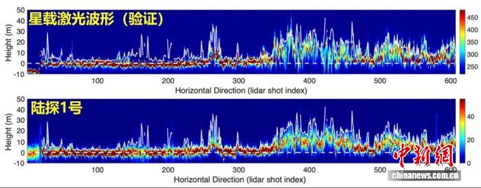星载激光雷达波形与陆探1号森林垂直剖面对比。中国科学院国家空间科学中心 供图