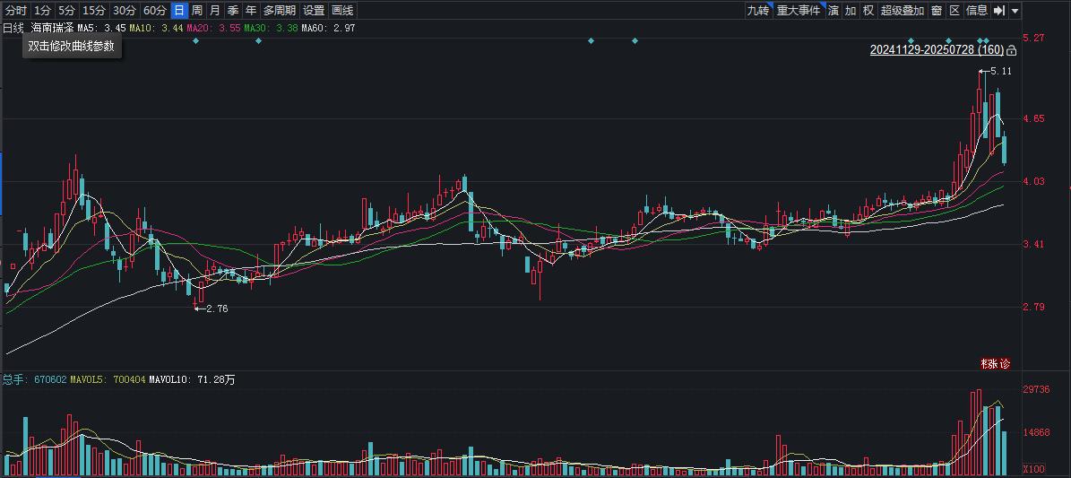 二级市场上,截至28日收盘,海南瑞泽下跌5.62%报4.20元/股,最新市值48.20亿元,近半年累计上涨超三成。