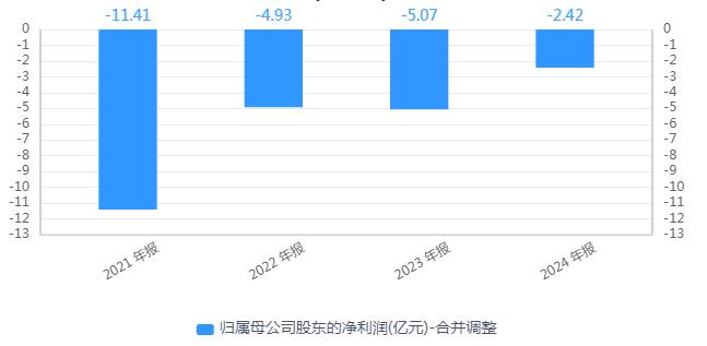 业绩方面,海南瑞泽已连续四年亏损,预计今年上半年亏损扩大。2021年至2024年,公司归母净亏损分别为11.41亿元、4.93亿元、5.07亿元、2.42亿元。
