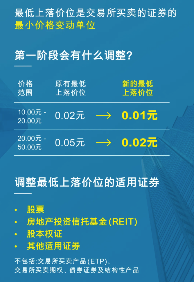 7月28日,香港交易所宣布,香港证券市场下调最低上落价位的第一阶段将于下周一(8月4日)生效。最低上落价位是每只股票的最小价格变动单位,这项措施将有助于降低市场的交易成本并提升交易效率。