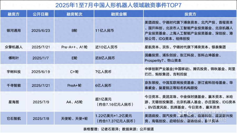 热钱涌入:亿元融资常态化,资本下注“落地能力”2025年上半年,人形机器人赛道在资本市场上持续升温,融资节奏显著加快。
