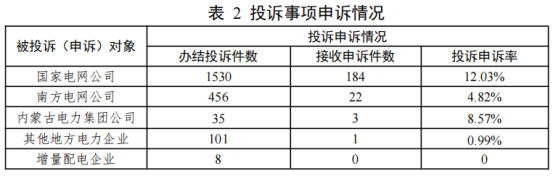 2025年6月,办结投诉事项2130件(含往期结转),12398热线平台接收申诉事项210件,投诉申诉率9.86%;其中,国家电网公司184件、南方电网公司22件、内蒙古电力集团公司3件、其他地方电力企业1件。
