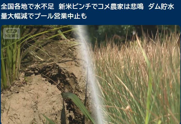 报道指出,由于高温少雨持续,福井县、新潟县和长野县等地严重缺水。此时正处于水稻最需要水的时期,这对水稻长势造成很大影响。