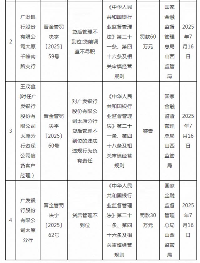 该行内部治理问题,曾一度成为阻碍其发展的历史顽疾。就在日前,广发银行太原分行及旗下支行因贷款业务方面的违规问题,被罚90万元。