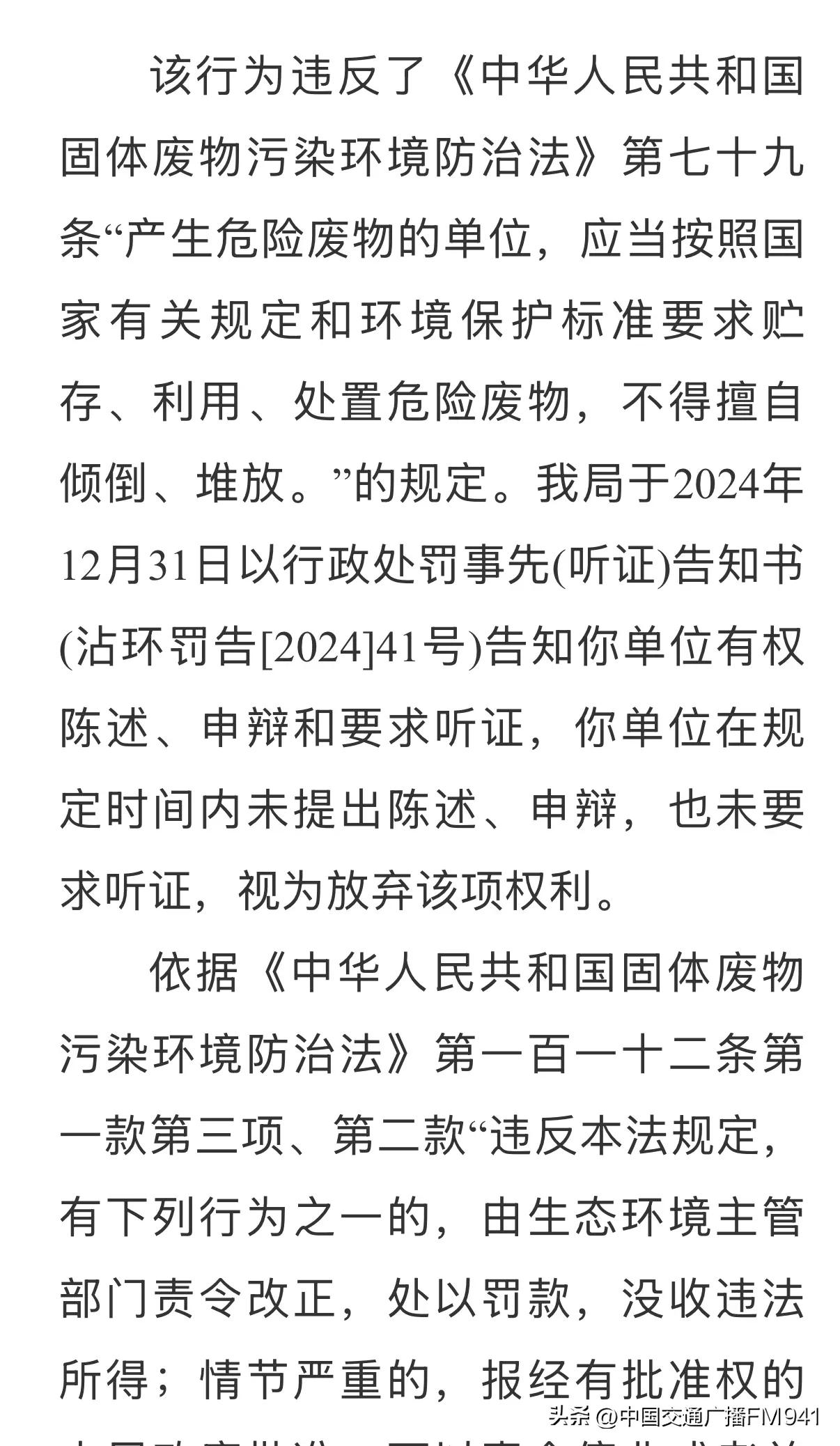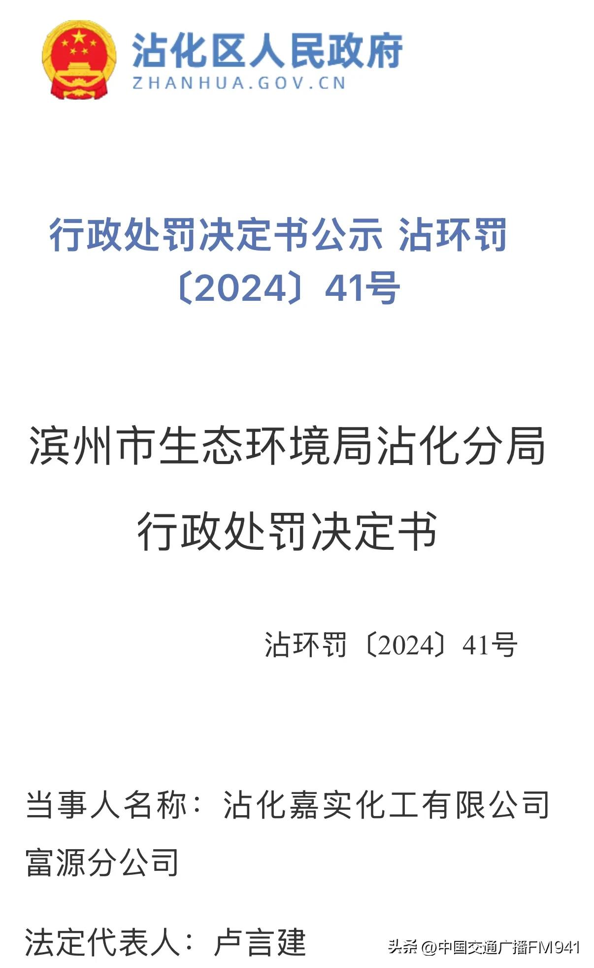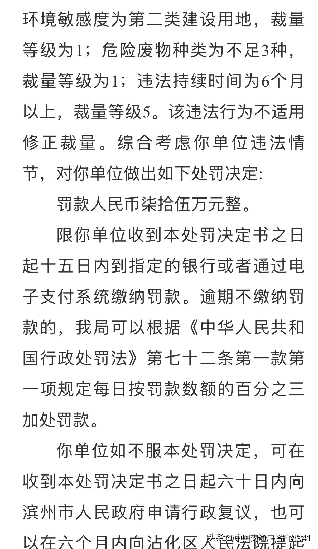 近日,滨州市生态环境局沾化分局对沾化嘉实化工有限公司富源分公司非法填埋危险废物的行为作出行政处罚决定,罚款人民币75万元。