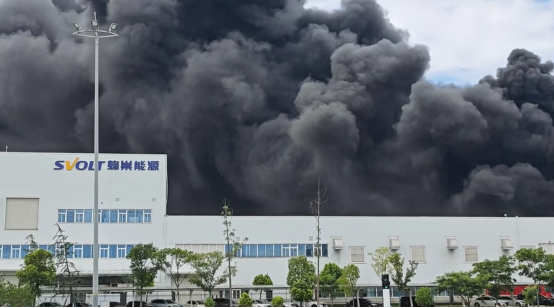 网络上出现蜂巢能源工厂起火的视频,视频中工厂浓烟滚滚,整个厂房上面被黑烟笼罩。