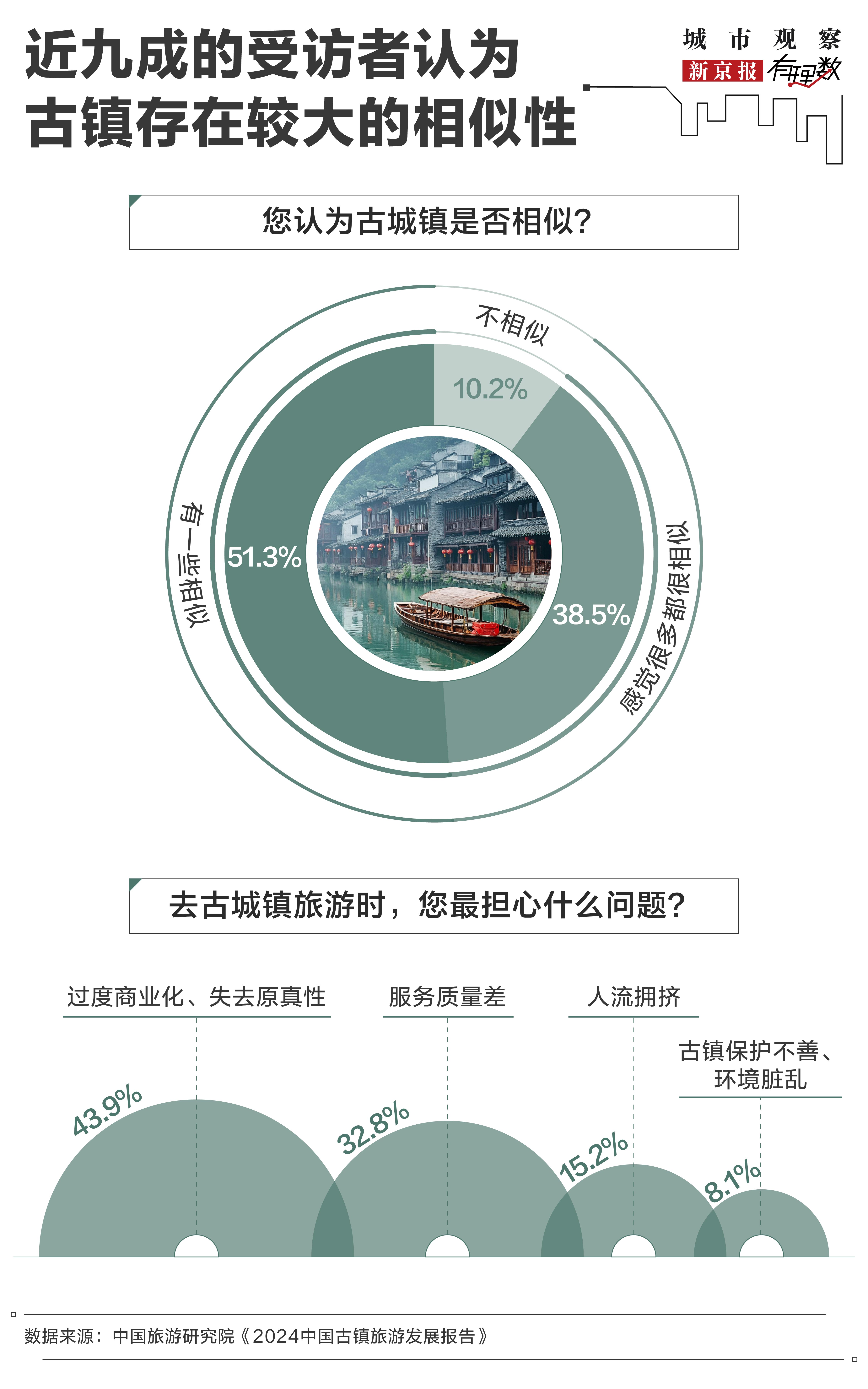 查重率过高,导致游客频频吐槽:连古城古镇,也开始处处“撞脸”。中国旅游研究院调研显示,近九成的受访者认为古镇存在较大的相似性,“过度商业化”目前是古城镇建设中最突出的问题。