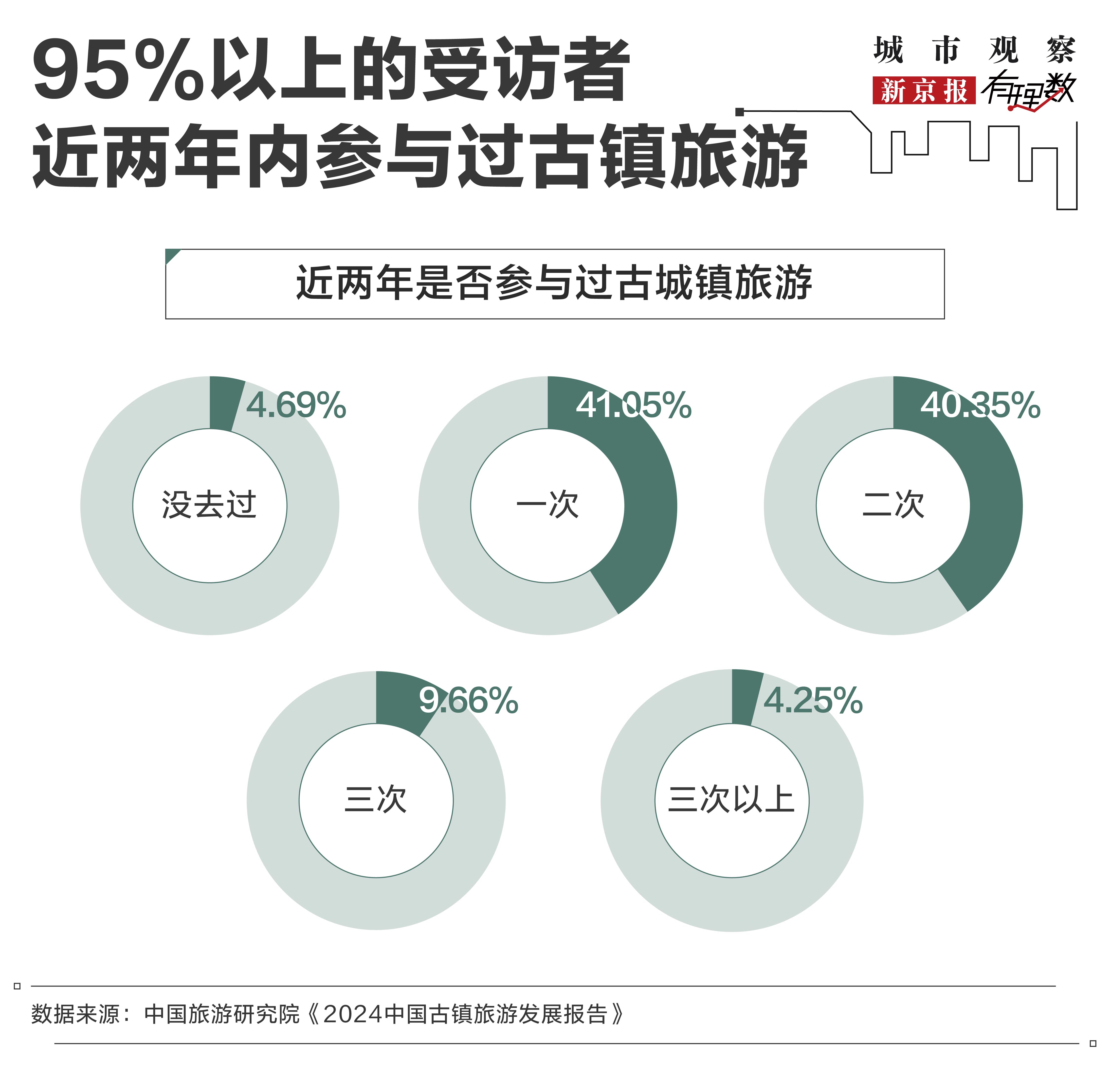 中国旅游研究院在2024年做过一项调研,调研显示,95.31%的受访者近两年内参与过古镇旅游,超过半数的游客在这两年内至少到访古镇两次。
