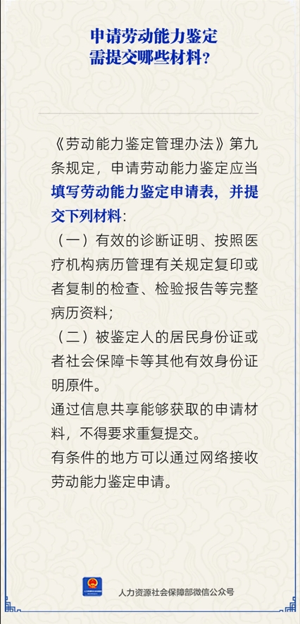 中新网7月22日电 申请劳动能力鉴定需提交哪些材料?人社部22日通过官方微信公众号作出解答。