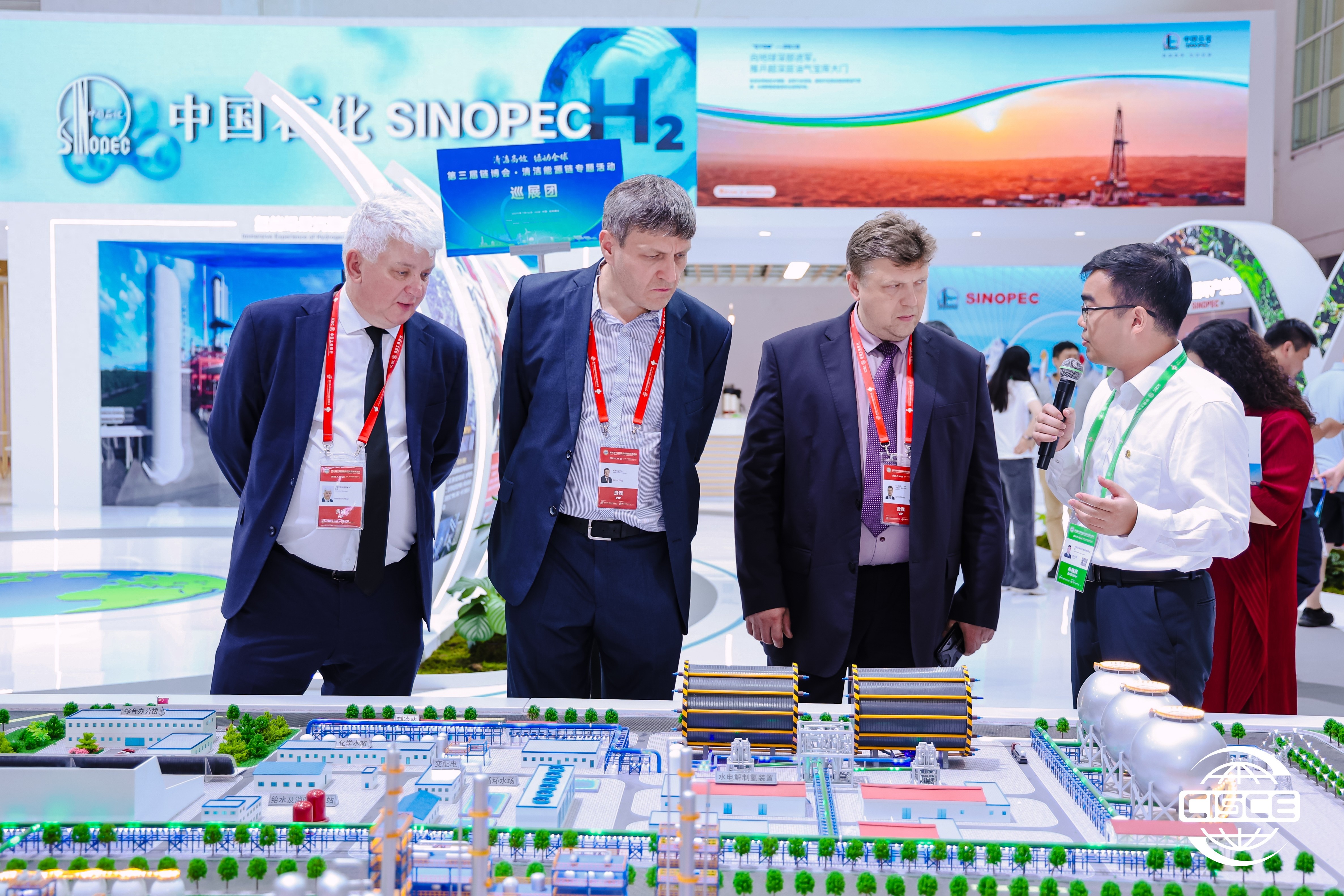 国际嘉宾在参观第三届链博会清洁能源链展区