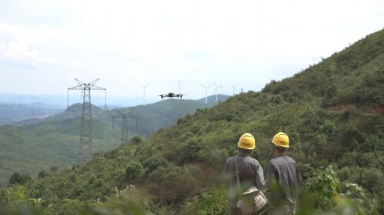 国网湖南超高压输电公司员工利用无人机开展迎峰度夏特巡。新华社发(杨洋 摄)
