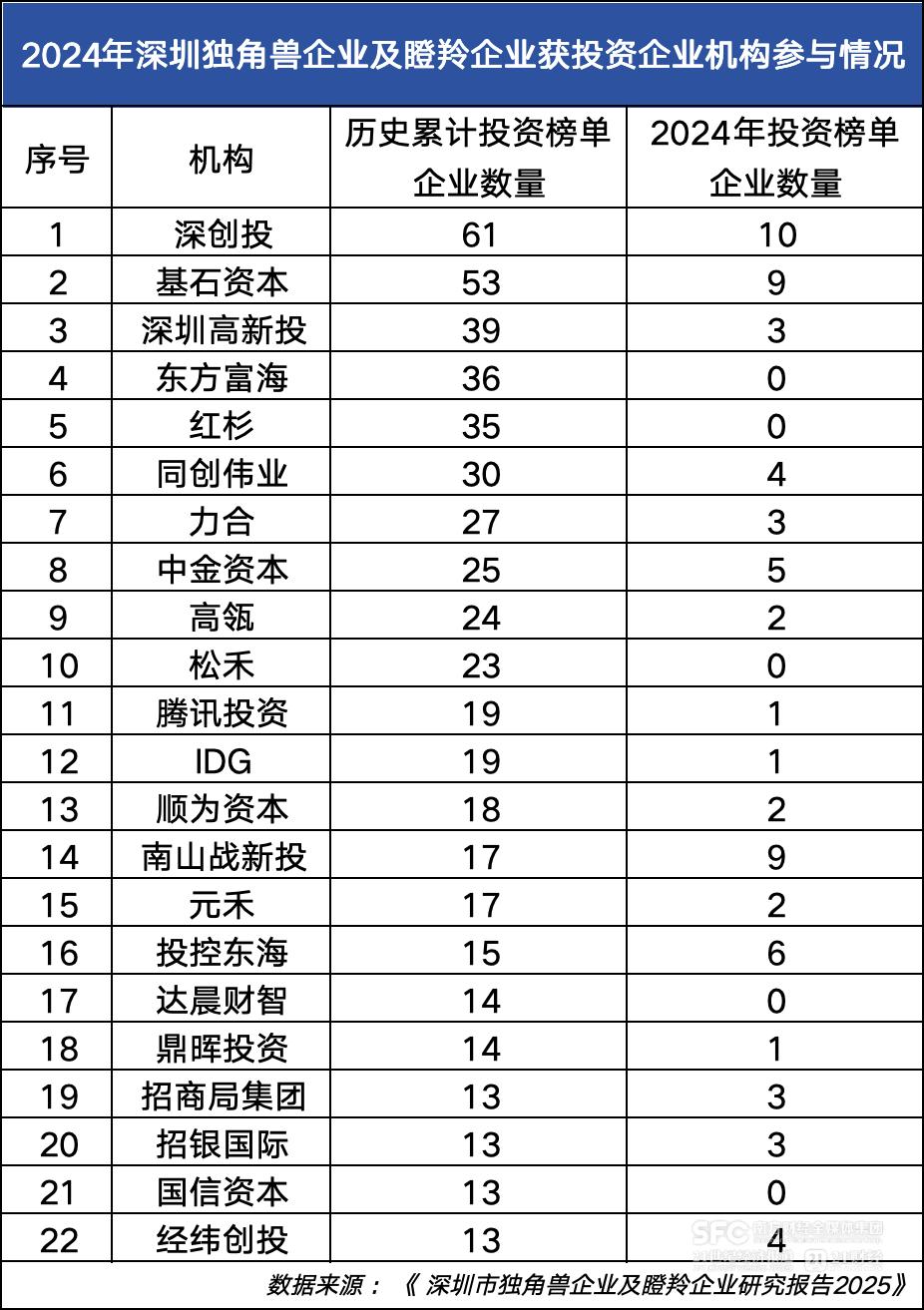 在他发布的《深圳市独角兽企业及瞪羚企业研究报告2025》显示,36%榜单企业获得深圳市政府引导基金支持,累计投资超400笔,累计投资金额近200亿元,引导国投招商、红杉资本、毅达资本、中芯聚源、中信资本等近20家非深圳机构投资深圳榜单企业,主要投资赛道分布在半导体与集成电路、新能源、智能机器人、人工智能等战略性新兴产业和重点领域。