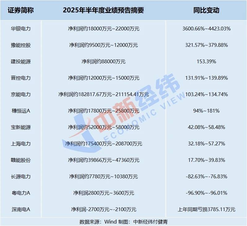 从增幅来看,华银电力同比增长3600%~4423%暂居榜首,豫能控股预计增长不低于321.57%、建投能源预计增长153.39%紧随其后;从数值来看,京能电力、上海电力分别预计净利润不低于18.28亿元、17.54亿元。