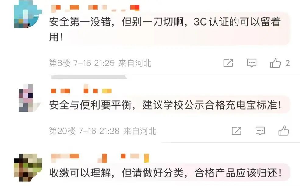 对此,不少网友认为,消防安全是大事,但应做好分类,合格充电宝需及时归还↓