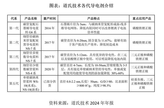 2017 年,道氏技术成功开发出用于三元锂电池的碳纳米管导电剂浆料,目前已更新至第五代单壁碳纳米管导电浆料。