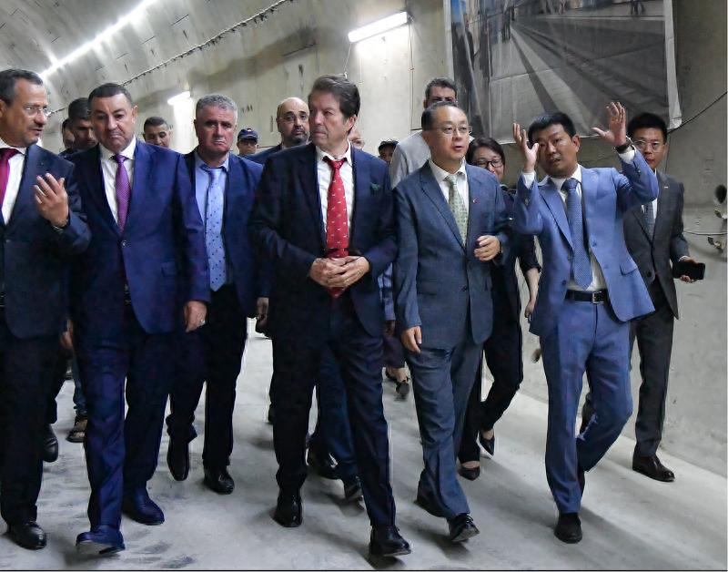 中国驻阿尔及利亚大使董广利(右三)出席阿尔及尔地铁一号线延长线工程开工仪式。中国铁建供图
