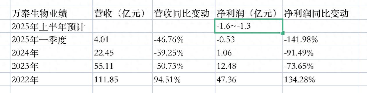 公开数据显示,万泰生物2022年实现净利润47.36亿元,2023年大幅下滑至12.48亿元,同比下降幅度达73.65%。进入2024年,公司净利润进一步收缩至1.06亿元,同比降幅扩大至91.49%。2025年上半年录得上市以来首次亏损。
