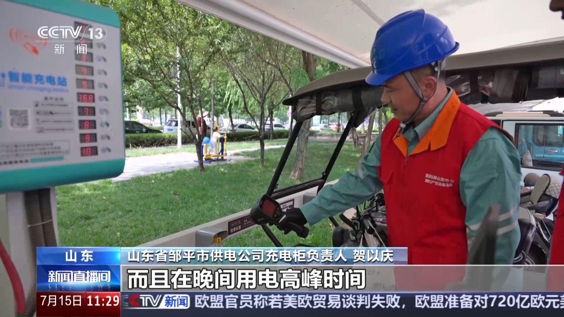 山东省邹平市供电公司充电柜负责人 贺以庆:我们的充电站配备了喷淋、热成像火焰探测器等设施,而且在晚间用电高峰时间,会自动开展设备巡检和红外测温,进行智能监控。