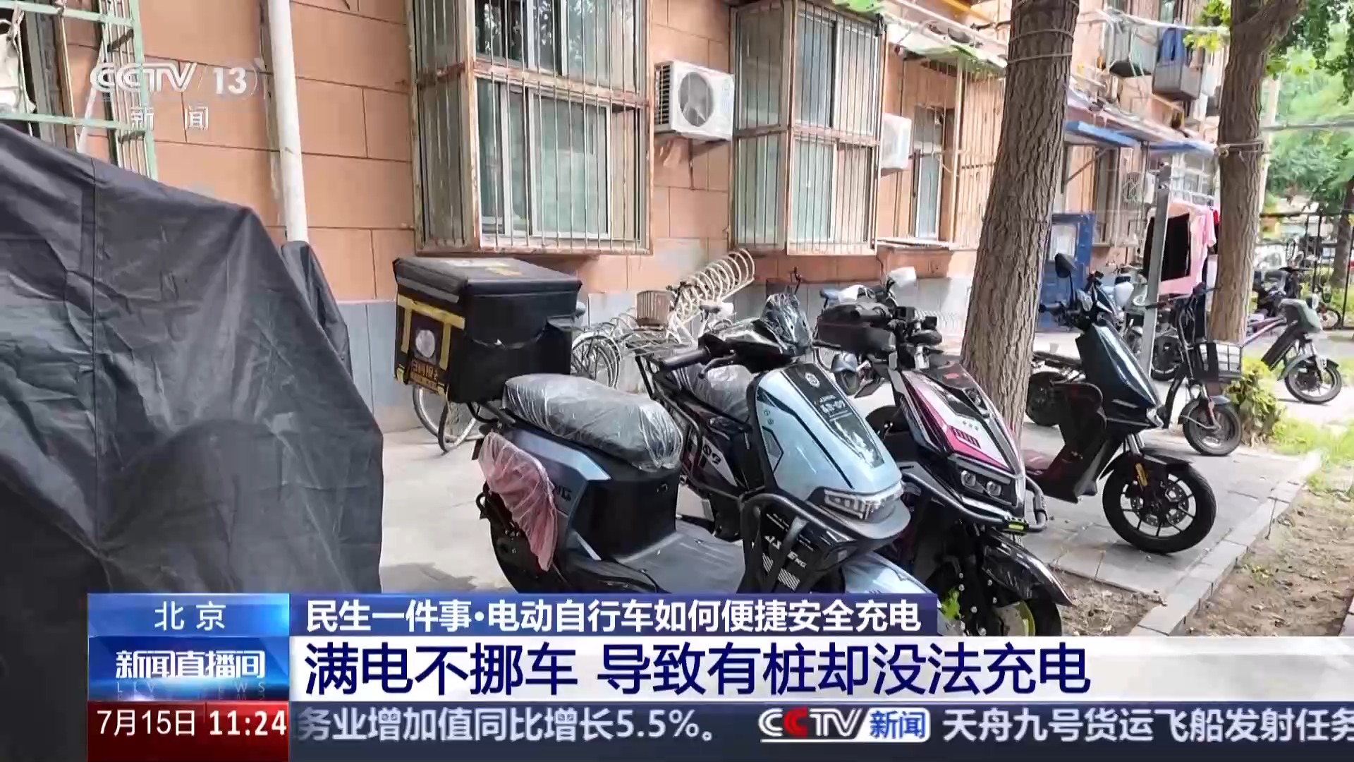 在北京市的多个小区,记者都看到了“满电不挪车”的情况,有桩却充不了成了电动自行车主最头疼的事儿。而有的小区,本身充电设施的数量配备就不充足,再遇到这种情况,充电就会难上加难。在北京市朝阳区呼家楼南里小区,记者发现小区内电动自行车充电设施数量相对较少,想要找到充电桩就更加困难,还有的居民违规“飞线充电”。