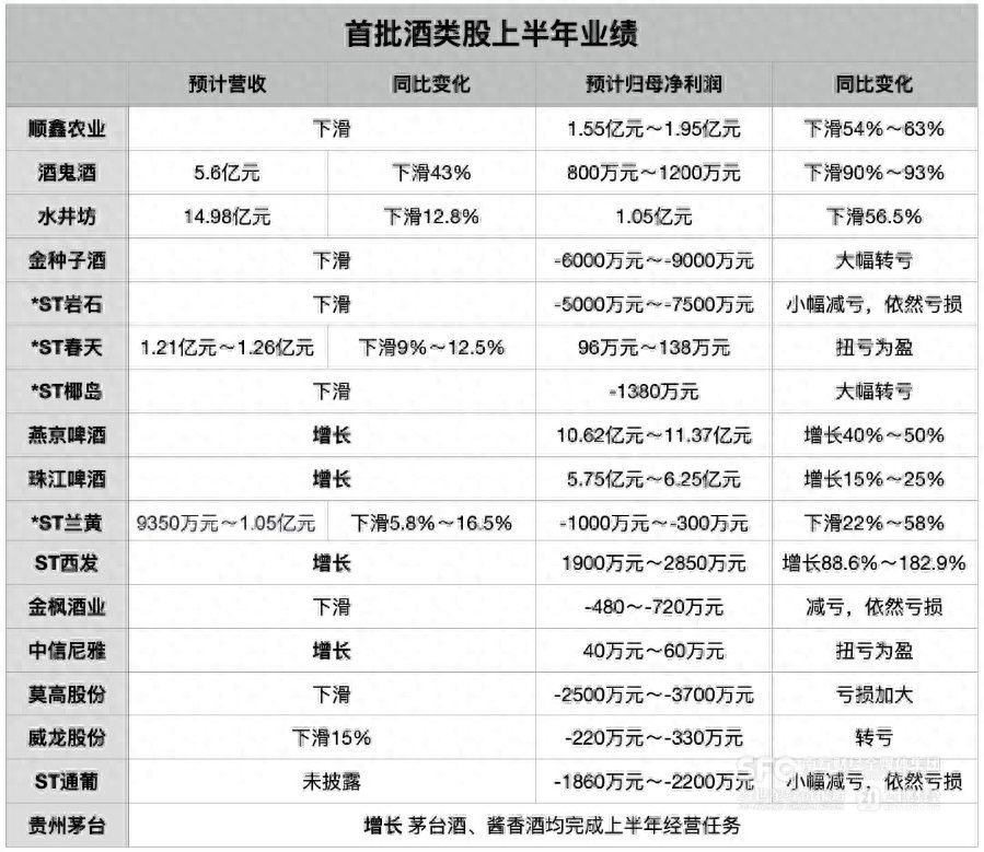 40余家酒类上市公司中,多数将在8月下旬披露正式的半年报。从上述率先披露的首批业绩预告来看,今年酒业的“年中汇报”不容乐观。