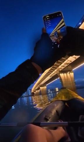 段先生拍摄的视频显示,当时直到天黑后,段先生还划了一会儿才到家,“计划是在天黑之前到家,路线是一条直线下来,虽然没有灯光,还是可以根据桥、岸边的一些建筑作参照物。虽然超出了预期时间,担心倒是没有,因为知道自己的体力极限在哪里,不过还是会需要给自己鼓劲。”