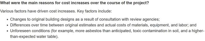 美联储在上周公布的“常见问题与回答”中解释称,多种因素推动了成本上涨,包括与审查机构协商后对原建筑设计的修改;随时间推移,原始估算与材料、设备和人工实际成本出现偏差。此外,例如石棉含量超出预期、土壤中的有毒污染以及地下水位高于预期,都构成了不可预见的超支原因。