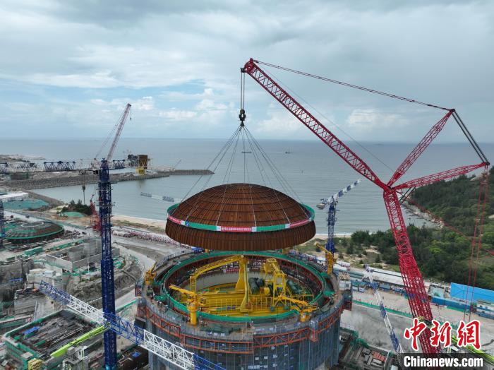 7月14日,中广核广东陆丰核电6号机组穹顶吊装现场。(中广核供图)