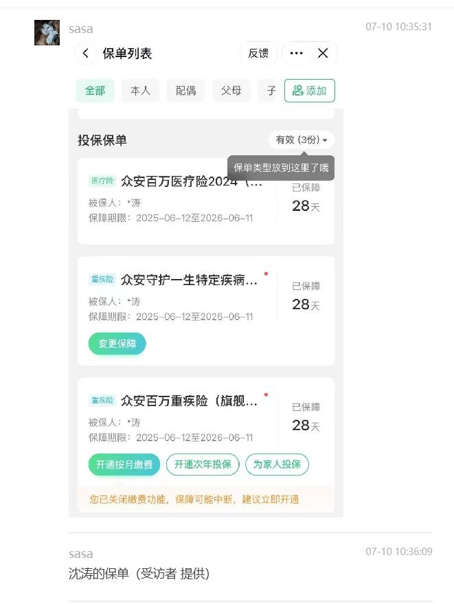 7月9日,一名自称为负责众安“全民普惠保”的客服人员就此事致电澎湃新闻,在了解了沈涛遇到的相关情况后表示,已登记这一情况,将反馈给公司,并跟进处理。