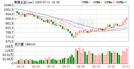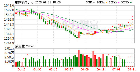 早盘,焦煤、焦炭期货主力合约双双大涨,涨幅分别达到4.07%、2.71%。6月4日以来,焦煤、焦炭期货主力合约双双自底部反弹,截至最新,焦煤期货主力合约累计上涨28.33%,焦炭期货主力合约累计上涨17.36%,