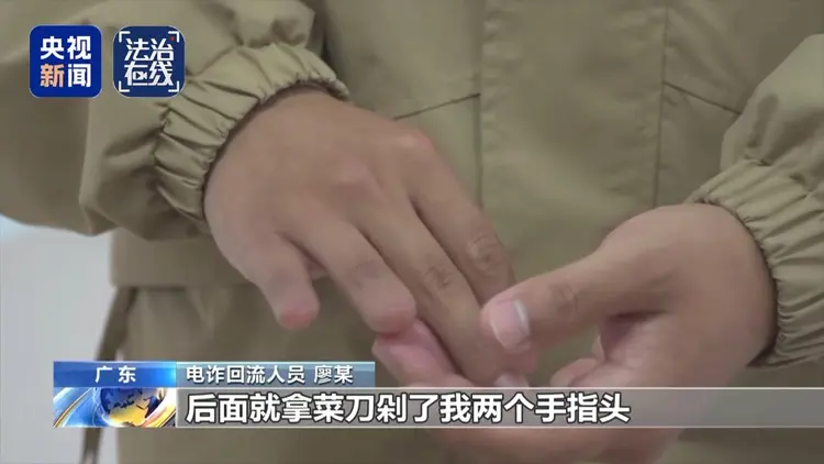 电诈回流人员 廖某:在小黑屋里面打我,七八个人一起打,棍子、PVC管、鞭子都有,四个手指的指甲都拿钳子拔了,后面用菜刀剁了我两个手指头。