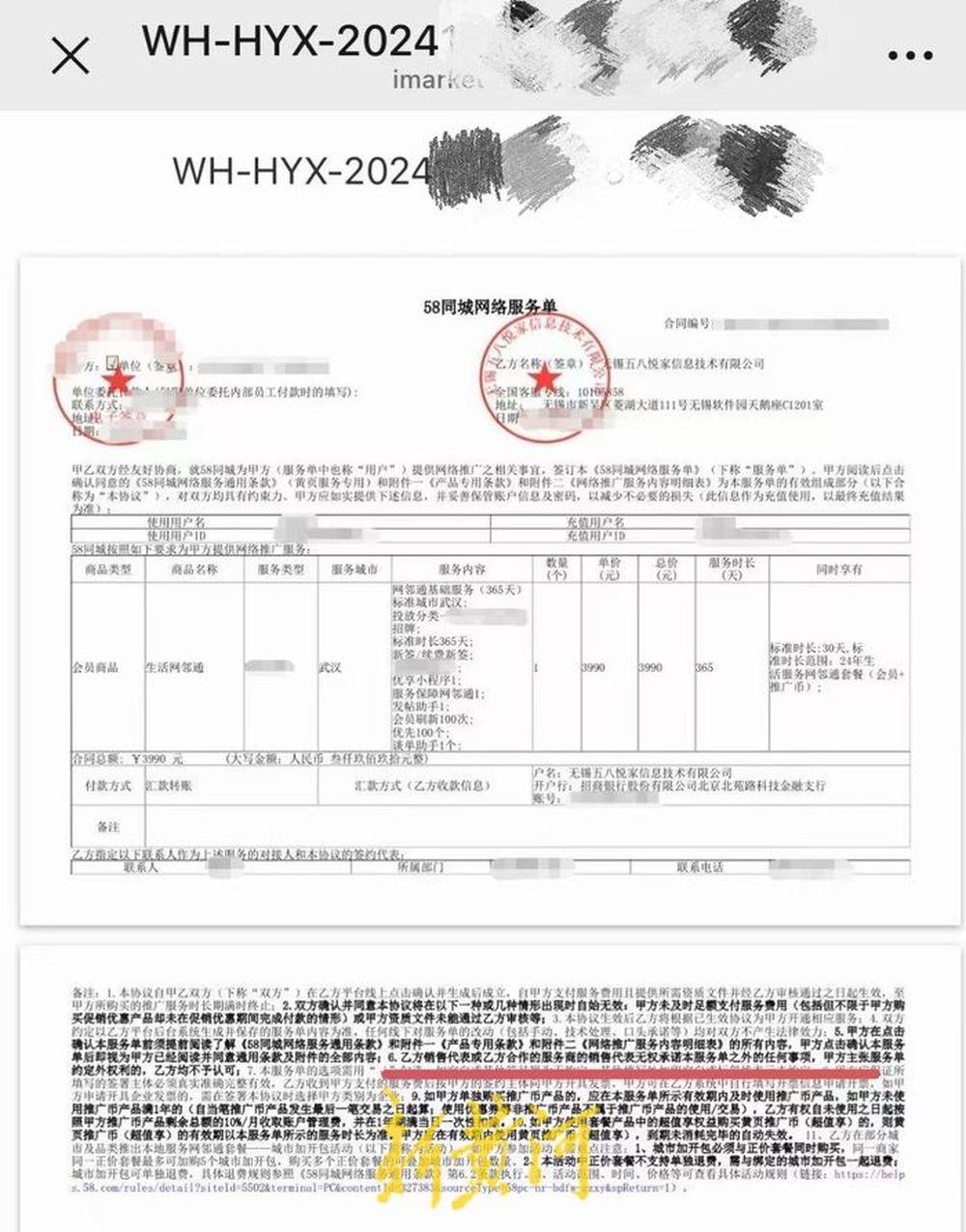 做贷款服务的王先生表示,自己于2024年6月6日购买58同城网络服务单,因没有任何效果提出了退费申请,但历时半年还未得到解决。图文广告公司的徐先生曾想过走法律途径,不过因缺乏相关证据且耗时长,最终只能不了了之。