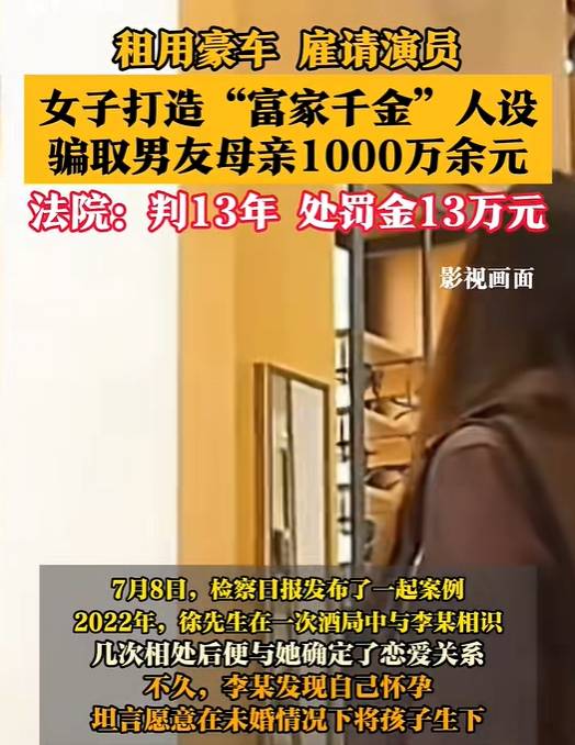 2022年,徐先生在一次酒局中与“朵朵”相识。有过留学经历的徐先生在交谈中感觉“朵朵”非常亲切,几次相处后便与她确定了恋爱关系。不久,“朵朵”发现自己怀孕,面对徐先生的犹豫,坦言愿意在未婚情况下将孩子生下。徐母得知此事后不忍伤害“朵朵”,将她接到家中进行照顾,并与其“母亲”(实为李某聘请人员假扮)见面商量定亲事宜。