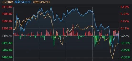 日内最高触及3512.67点的沪指,下午2点半后快速走弱,最低回落至3491.20点。