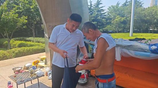 青岛市救助服务中心为露宿人员发放物资。来源:青岛民政