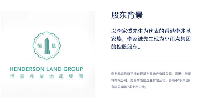 据官网介绍,重庆小雨点小贷公司隶属于恒基兆业地产集团,背靠以李家诚为代表的香港李兆基家族,李家诚现为小雨点集团的控股股东。小雨点目前服务用户超560万,合作企业2000多,合作金融机构超120家。
