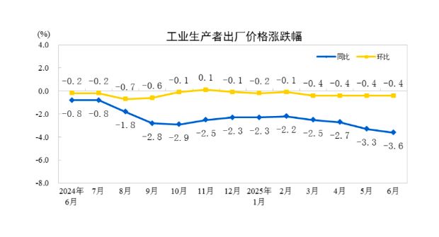 国家统计局7月9日发布的数据显示,6月居民消费价格指数(CPI)同比由上月下降转为上涨0.1%;环比下降0.1%。工业生产者出厂价格指数(PPI)环比下降0.4%,降幅与上月相同;同比下降3.6%,降幅比上月扩大0.3个百分点。