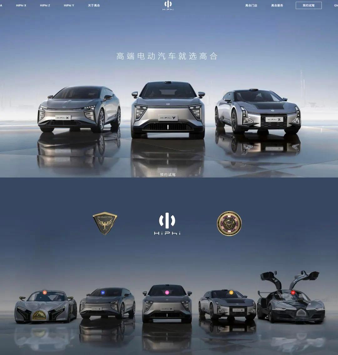 高合汽车官网(上图)和EV Electra官网(下图),高合X、Y、Z三款主要车型被放在了中间位置。图源 | 官网截图
