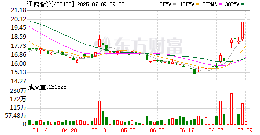 盘面来看,7月初以来,光伏板块触底后一路震荡上行。在大盘整体上扬的背景下,光伏板块7月8日涨势强劲,截至8日收盘,通威股份(600438.SH)涨停,隆基绿能(601012.SH)等光伏个股涨幅超过6%,光伏设备(BK1031)涨幅达5.55%。