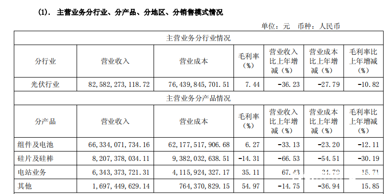 以隆基绿能来看,公司硅片、硅棒环节2024年的毛利率甚至为负数,即-14.31%,同比大幅下滑30.19%;组件及电池环节2024年毛利率也仅为个位数,即6.27%,同比下滑12.11%。