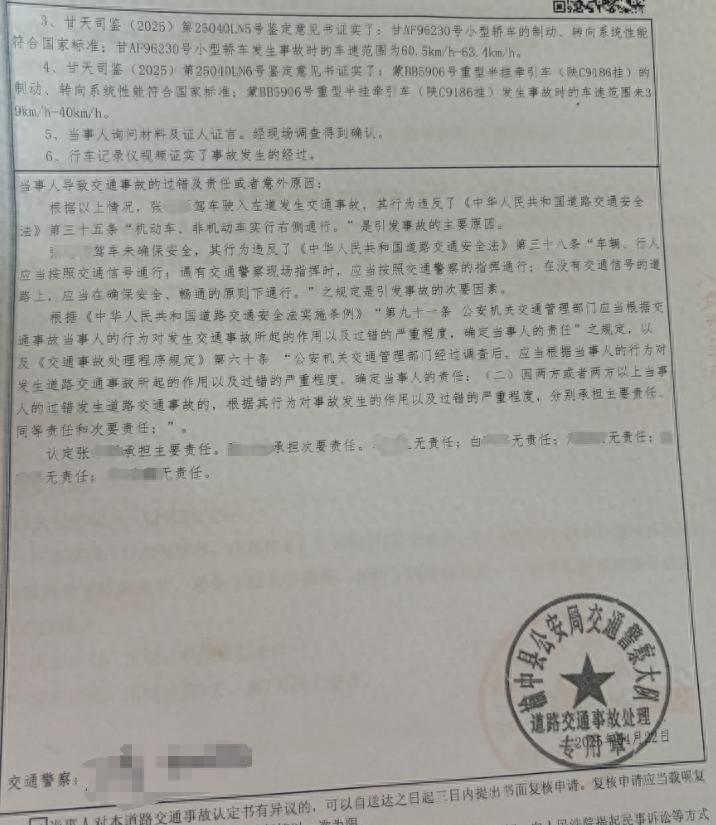 6月下旬,白女士在护工的协助下从四川成都坐火车到甘肃兰州,请求张先生一家出来见面,张先生及其家人都未有见面。根据榆中县公安局交警大队出具的道路交通事故认定书,事故为张先生承担主责,大车司机为次责。