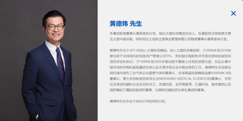黄德炜是太盟投资集团(PAG)合伙人、私募股权联席主管及太盟中国总裁。胡正伟是阿布扎比投资局私募股权部门中国区主管。