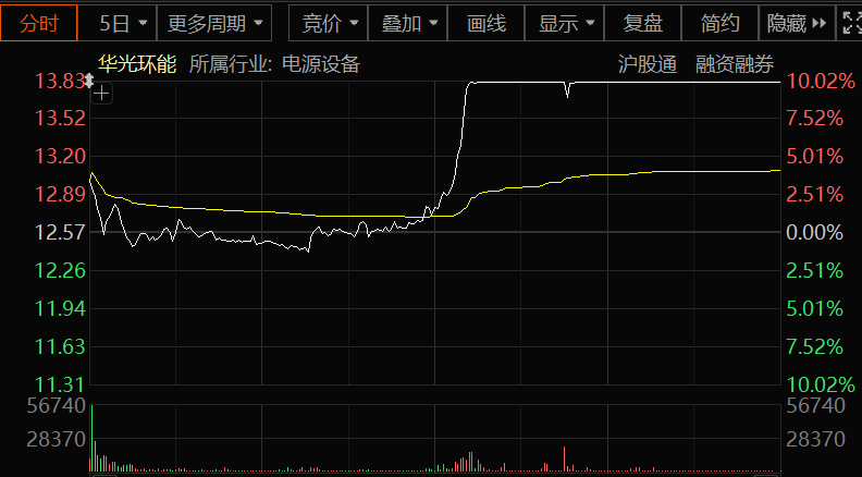 市场热点方面,电力股全线走强,板块指数放量高开高走,创年内新高。华光环能午后直线拉升,连续第3日涨停,股价创2011年3月以来14年新高(复权),并逼近历史最高点。韶能股份、世茂能源、华电辽能等逾10股亦强势涨停。