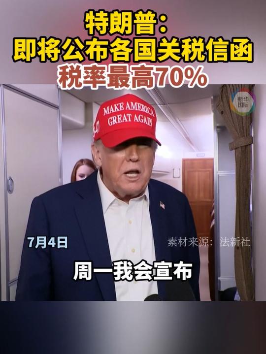 据新华社7日消息,美国总统特朗普当地时间6日在社交媒体发文说,美国政府将于当地时间7日中午12时起公布与贸易伙伴的关税信函或关税协议。特朗普此前表示,拟于8月1日起对部分国家的商品实施最高达70%的关税措施。