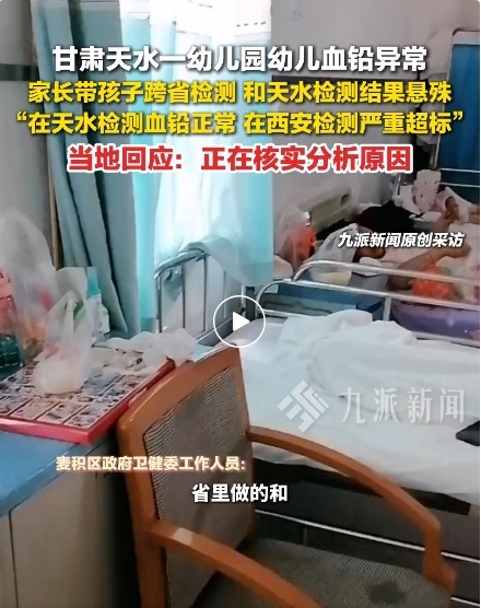 近日,甘肃天水麦积区褐石培心幼儿园违规使用添加剂致幼儿血铅异常,引发社会关注。有家长反映在天水当地做的集中血铅检测和在西安市中心医院检测出的结果相差巨大。7月7日,九派新闻记者以孩子家长身份咨询此事,甘肃天水麦积区政府一名工作人员称两边检测结果都是机器做的,数据差异具体原因正在分析核实,后续有结果出来后会告知。天水市卫健委一名工作人员称,这个事情由区政府牵头,相关问题由区政府解答。