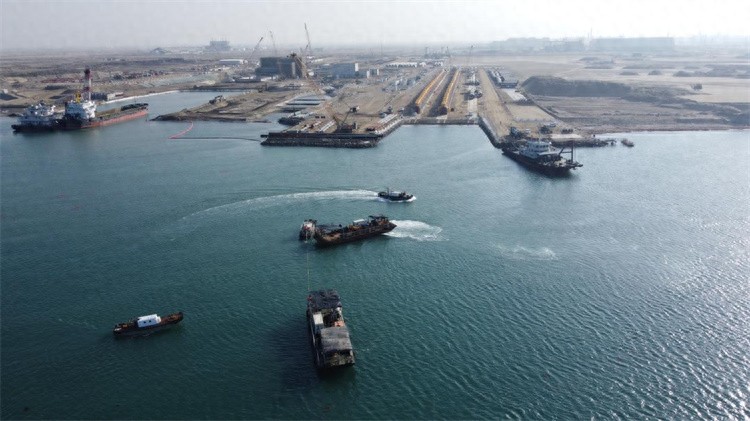 近日,由中国港湾承建、中交四航局负责施工的沙特吉赞工业城海水冷却项目完成3.5米直径高密度聚乙烯(HDPE)管道在无掩护海域的出运安装,标志着世界上直径最大的柔性管道安装成功。