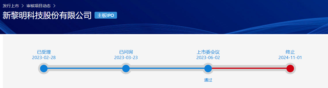 据上交所网站信息,新黎明主板IPO申请在2023年2月28日获得上交所受理,同年6月2日过会。但大约在一年半后,2024年11月1日,因新黎明与保荐机构华泰联合证券主动撤回了IPO申请,上交所终止其主板发行上市审核。