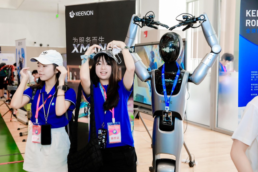 记者注意到,在本届机器人科技节嘉年华现场,擎朗智能全球首款人形具身服务机器人XMAN-R1、傅利叶开源人形机器人 Fourier N1及宇树科技的G1机器人亮相现场,吸引了不少两岸学生与家长体验、互动。