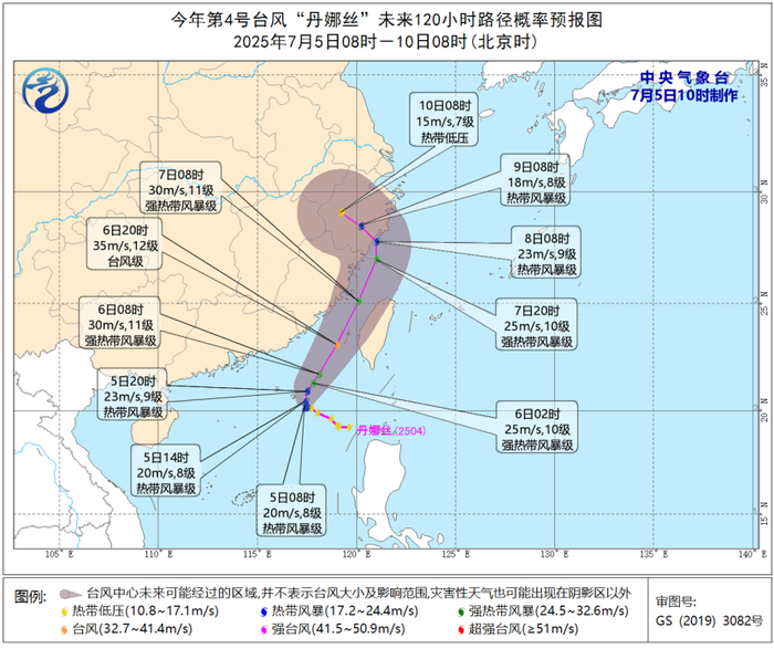 关注与建议:“丹娜丝”将穿行台湾海峡,给东南沿海部分地区带来强风雨天气,尤其是福建、浙江等地台风暴雨次生灾害和大风灾害风险较高。目前正值暑假,相关区域游客及当地居民需提高警惕,注意出行安全。