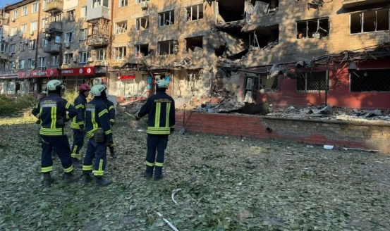 ▲乌克兰国家紧急情况局公布基辅遭袭后图片。图源:央视新闻客户端
