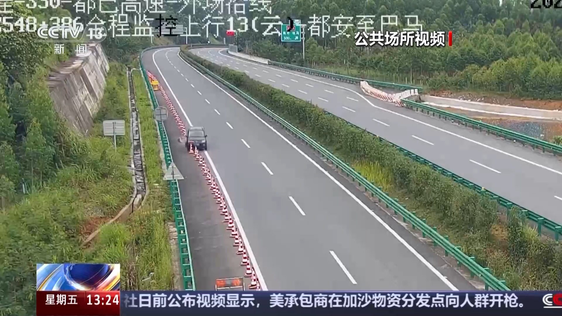 近日在位于广西河池这处高速公路施工路段,一辆小车行驶时突然方向偏离,连续撞飞多个锥筒及提示牌。